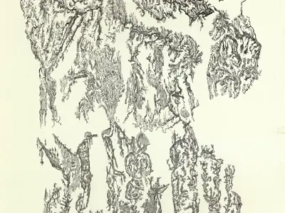 Tonight, we are pleased to share a pen and ink drawing titled The Organismal and Mental Mysteries, a work that questions the inherited imbalances between humans and nature, masculine and feminine, progress and care. This drawing invites viewers to consider how suppressed feminine energy—often overshadowed by dominant cultural and societal structures—can offer a path toward collective renewal.